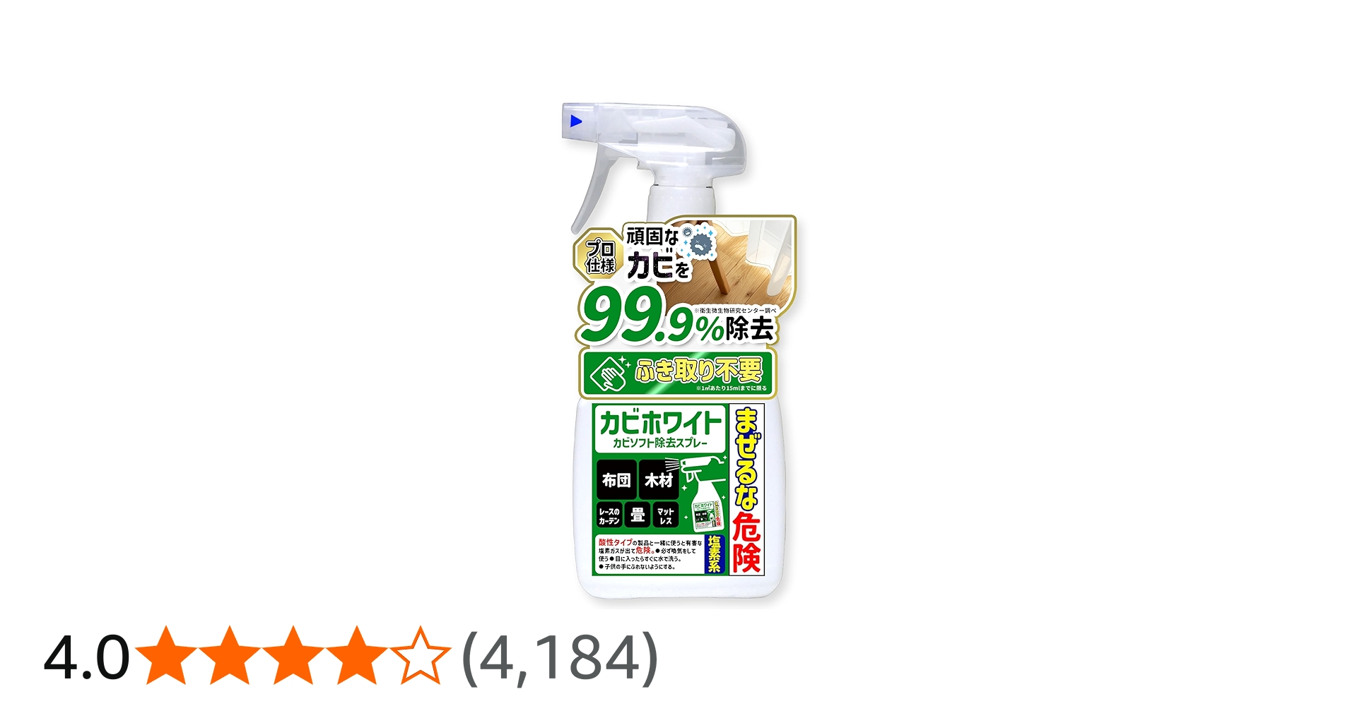 それなりに強力なカビもちゃんと落としてくれる上に、カビが生えた箇所にスプレーして干しておくだけと手軽に使えます。