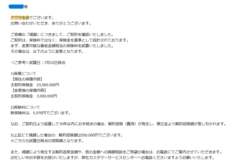 実際に自分で保険会社に問い合わせてみると、減額には思っていたより制限がありました。