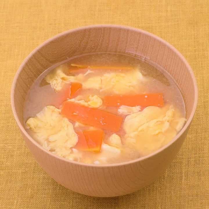 にんじんの甘みと卵のやさしさで、子どもでも飲みやすい味噌汁です。